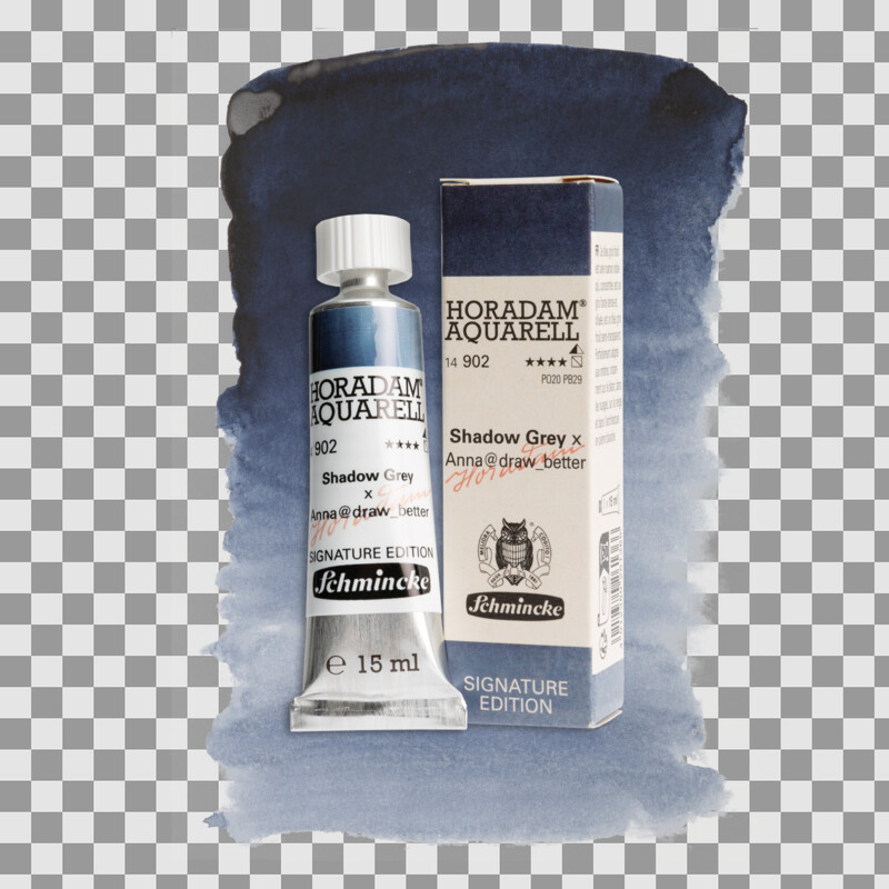 Shadow Grey x Anna@draw_better: Ein kühles, tiefes Graublau, das bei voller Intensität dichtes Dunkelgrau erzeugt und verdünnt ein halbtransparentes, kühles Graublau. Perfekt für Schatten auf weißen Flächen, Wolken, Schnee und Steinarchitektur.